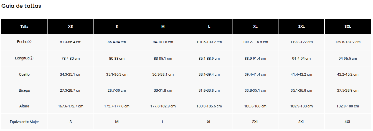 - Largo (HPS): 29.5″, talla grande